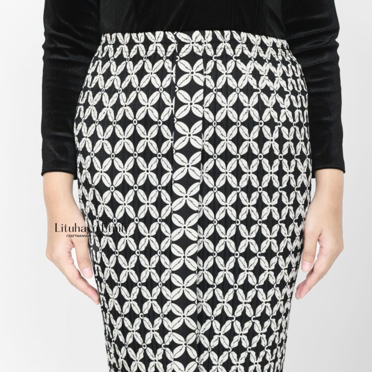 Jarik plisket batik instan bermotif Kawung Jatayu. Tinggal pakai saja jariknya tidak perlu jarum & peniti.