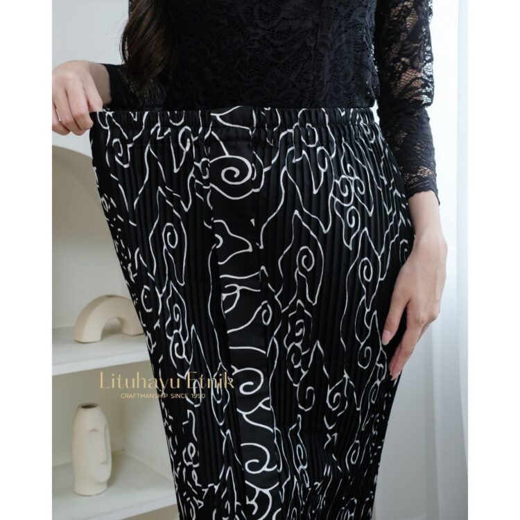 Jarik plisket batik instan bermotif Mega Mendung. Tinggal pakai saja jariknya tidak perlu jarum & peniti.