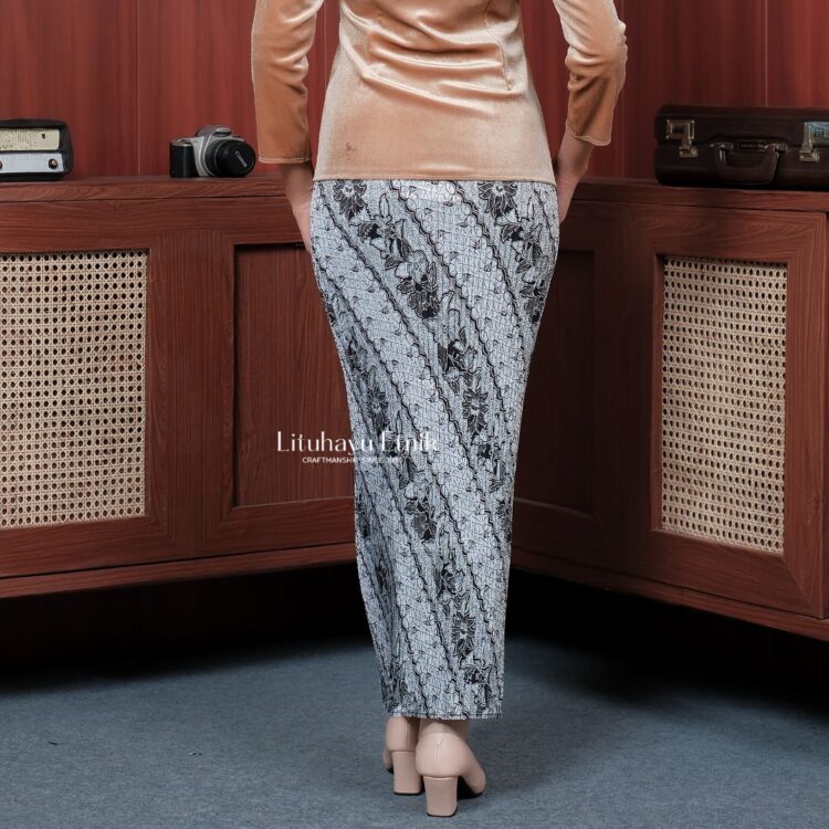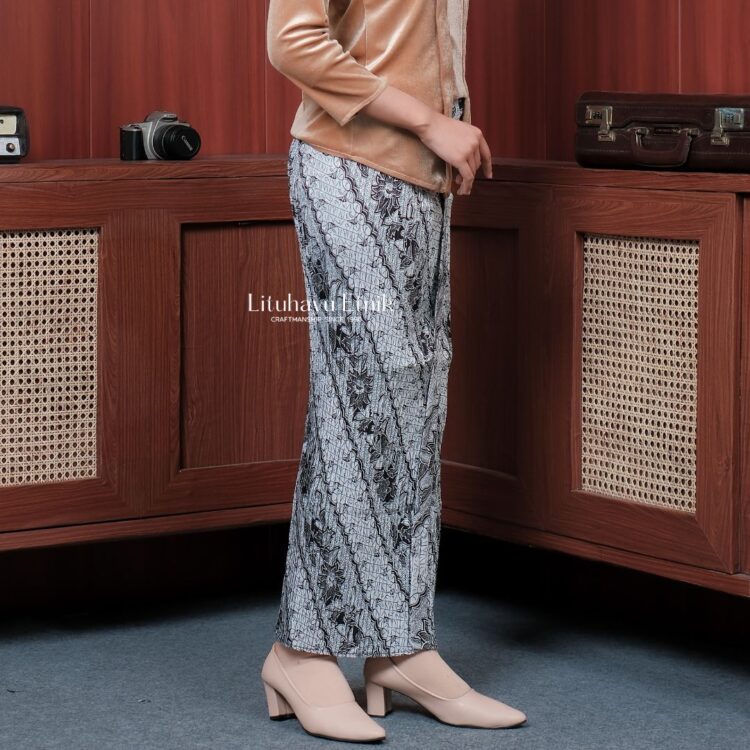 Jarik plisket batik instan bermotif Parang Praba. Tinggal pakai saja jariknya tidak perlu jarum & peniti.