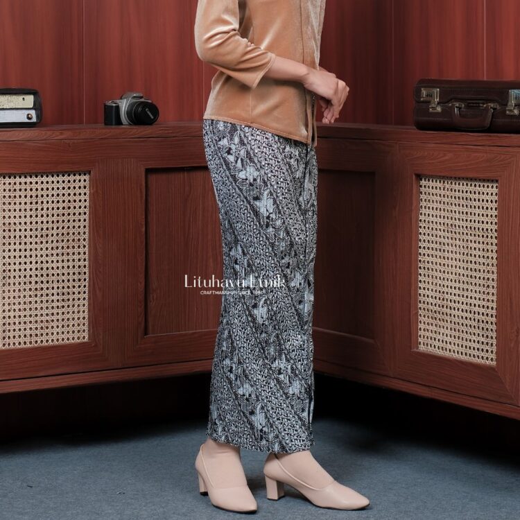 Jarik plisket batik instan bermotif Parang Rajani. Tinggal pakai saja jariknya tidak perlu jarum & peniti.