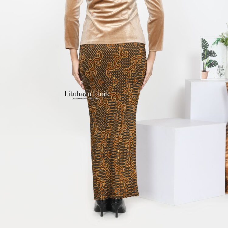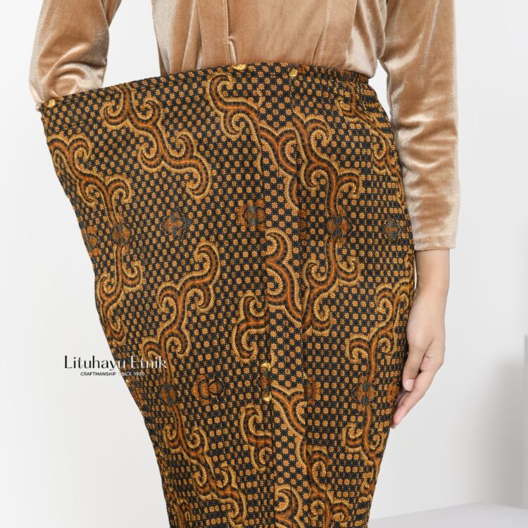 Jarik plisket batik instan bermotif Truntum Kuncoro. Tinggal pakai saja jariknya tidak perlu jarum & peniti.
